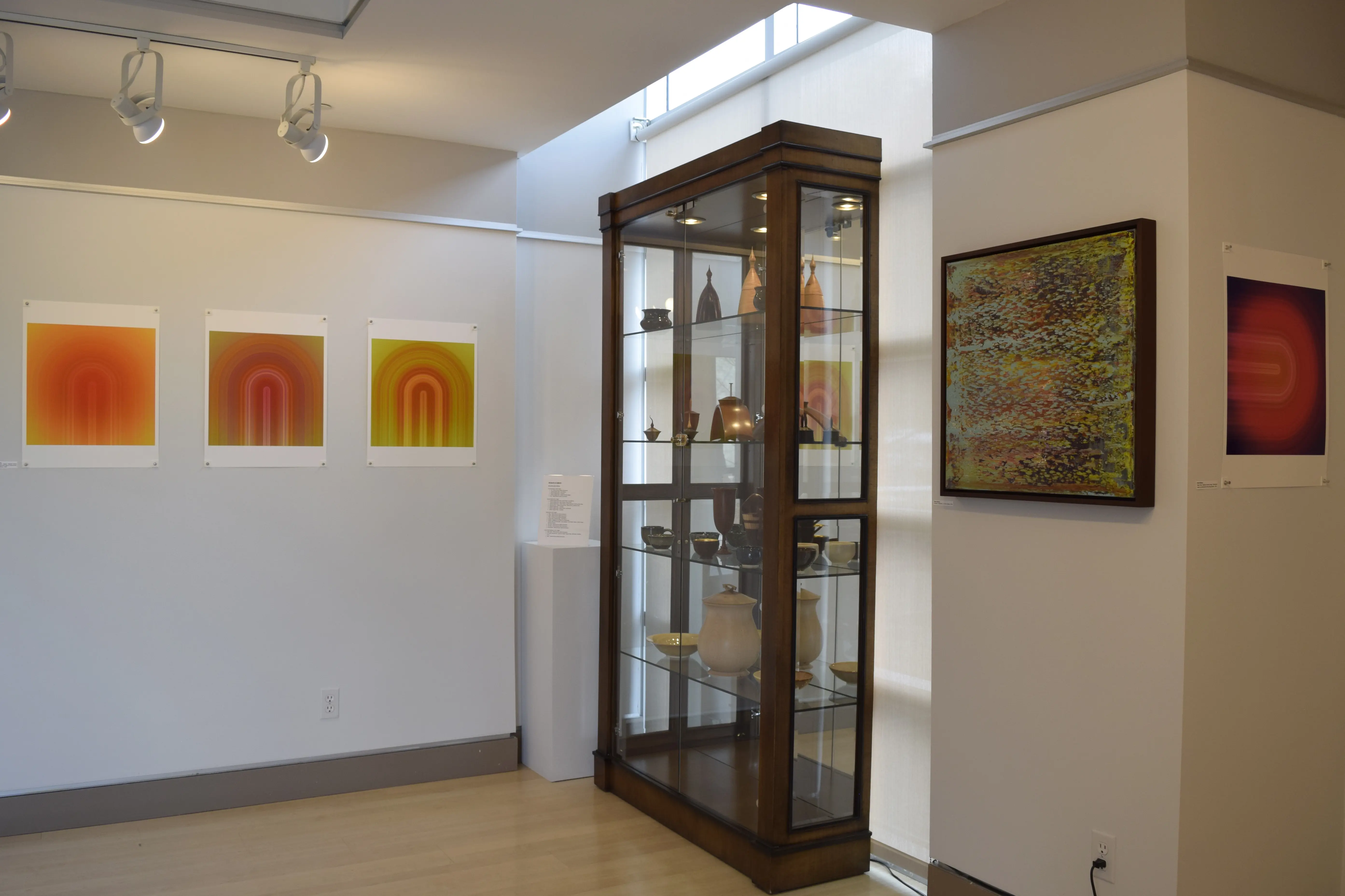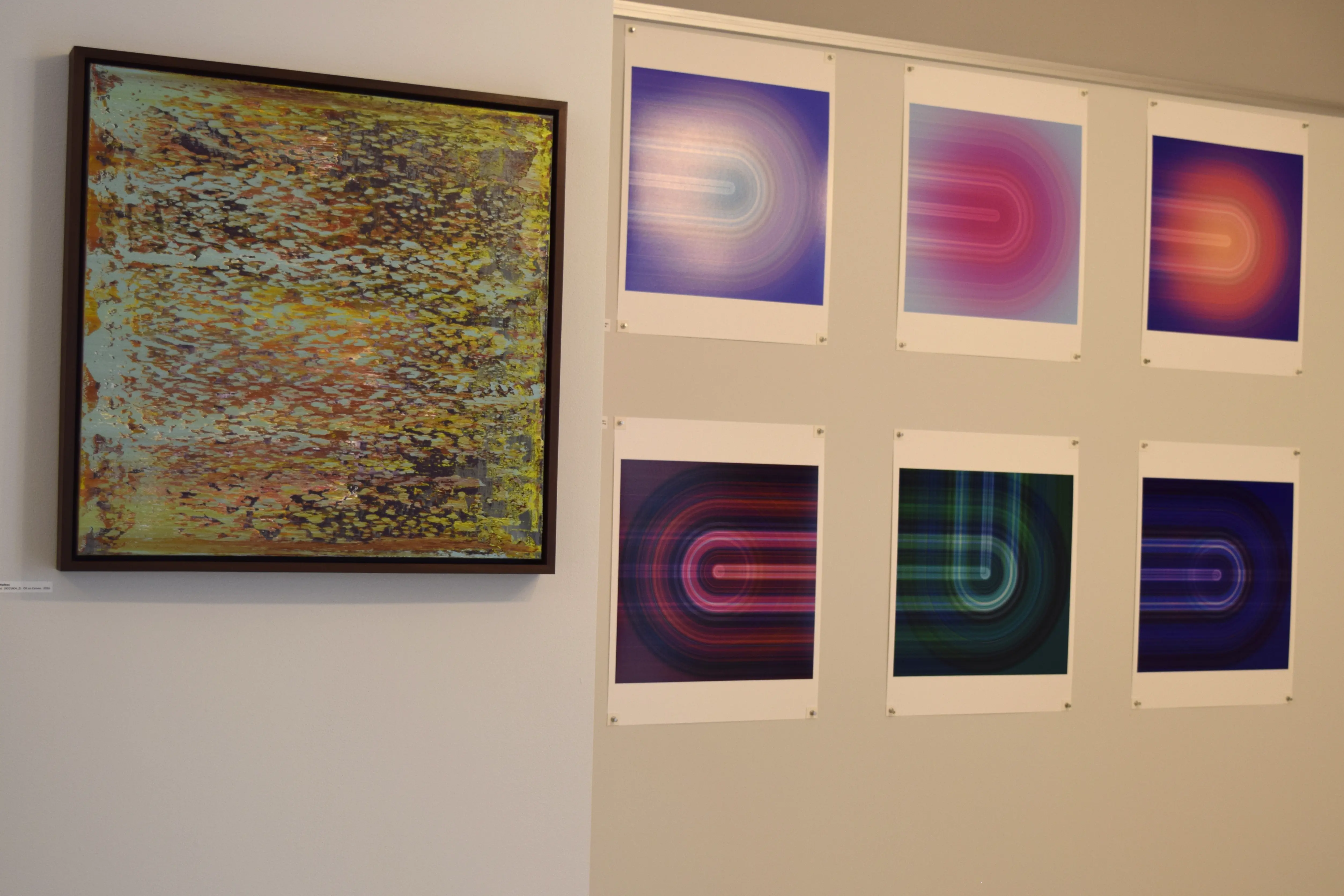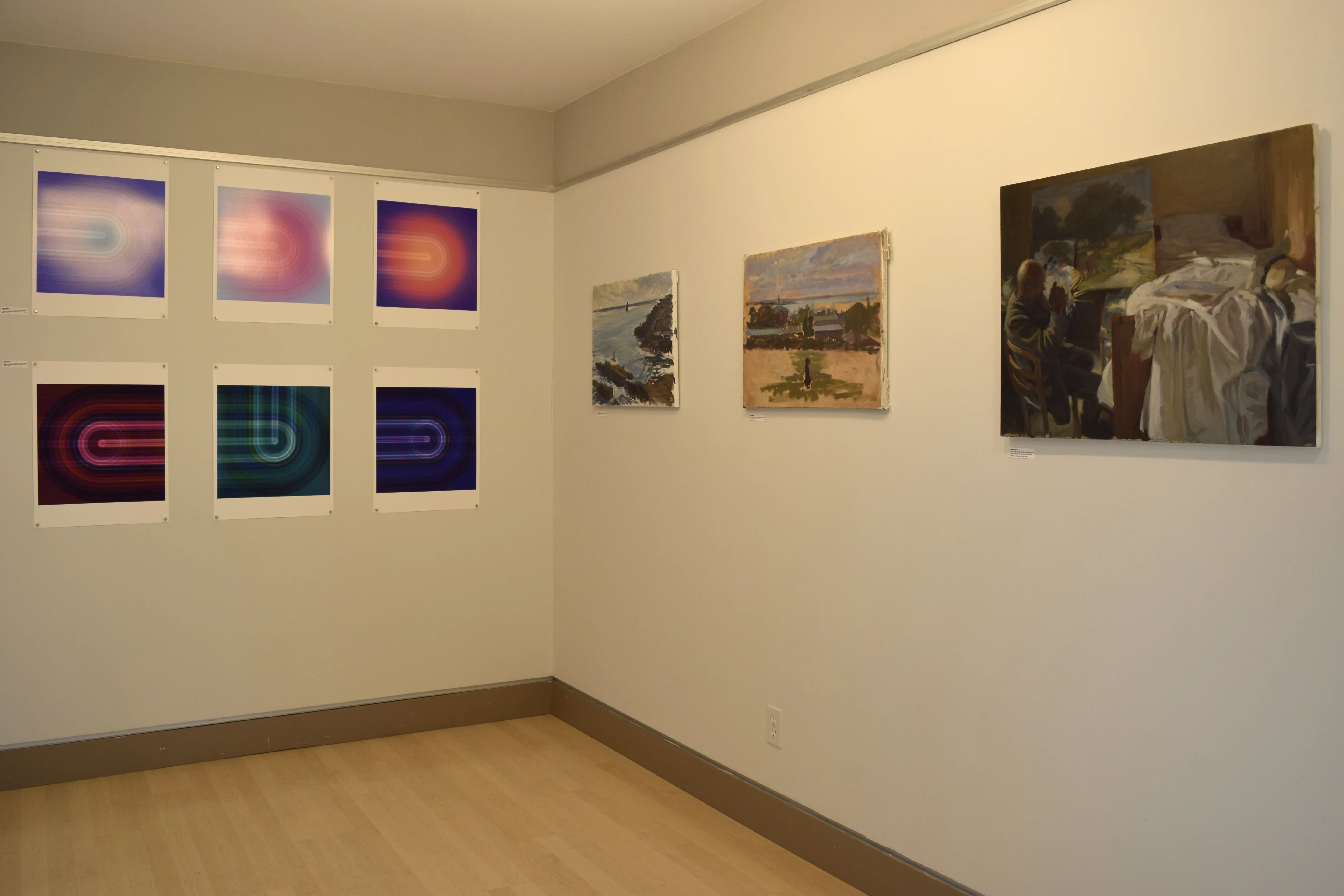 Director of Fine Arts Mark Nadeau included a striking series of digitally created images entitled "Moods/Modes," "Subtractive," and "Additive" (2025), each presented as a triptych and printed using a pigmented inkjet on Hahnemuhle Photo Rag Baryta, alongside pieces such as "Neon Glow" (2025) and an earlier oil painting, "Untitled (#201604_2)" (2016).